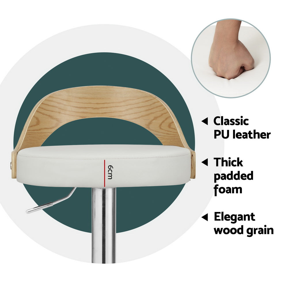 Enhance your space with the elegance and modern design of the Florence Bar Stools. Perfect for kitchens, dining areas, or bars, these stools combine functionality with sophisticated aesthetics. Featuring a curved bentwood seat back and premium PU leather upholstery, they provide exceptional comfort and a sleek look. The adjustable height and 360° swivel make them versatile for any setup, while the semi-circular footrest and sturdy chrome base ensure stability. Complete with floor protectors, these stools offer durability without compromising your floors. A timeless choice for any contemporary or minimalist décor.