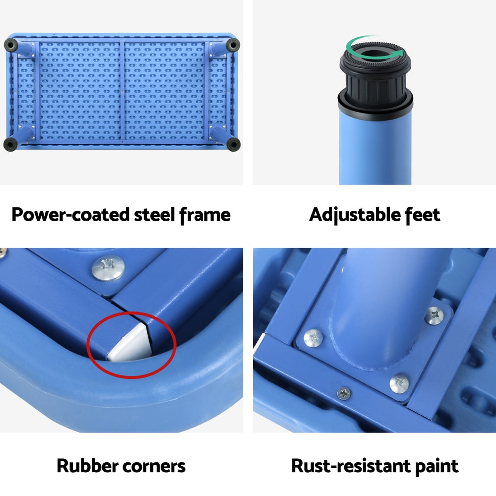 Make playtime more fun and functional with the 5-Piece Kids Activity Table and Chair Set. Designed for drawing, reading, crafting, and play, this set includes a sturdy table and four colourful chairs, built to handle everyday use. The high-quality HDPE plastic surfaces and powder-coated steel frames ensure durability both indoors and out.