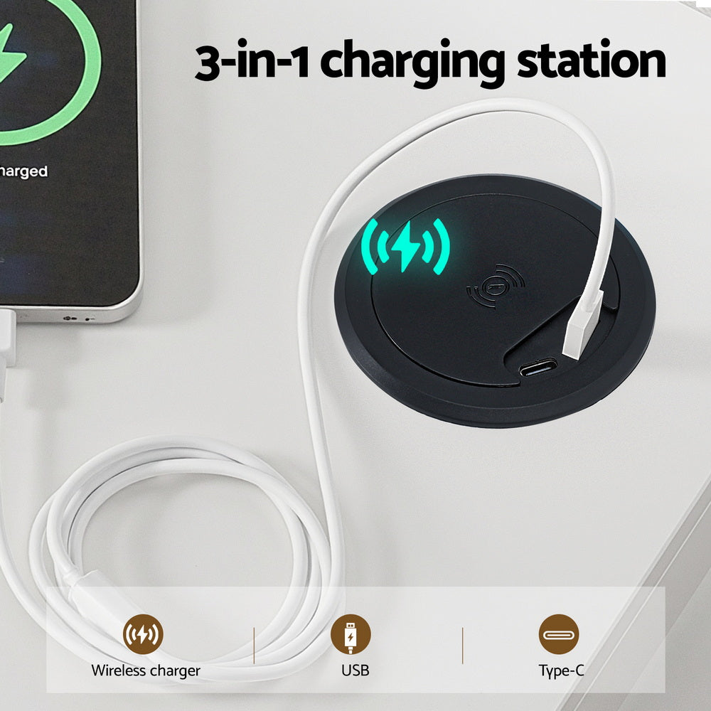 Designed for both functionality and convenience, this cabinet is crafted from durable E1 particle board with a matt UV surface for lasting use. Adjustable warm LED lighting highlights your display items, while the built-in 3-in-1 charging port (wireless, USB, and Type-C) keeps devices powered at hand. An included anti-tip kit ensures safety, and the easy-to-clean surface makes maintenance simple.