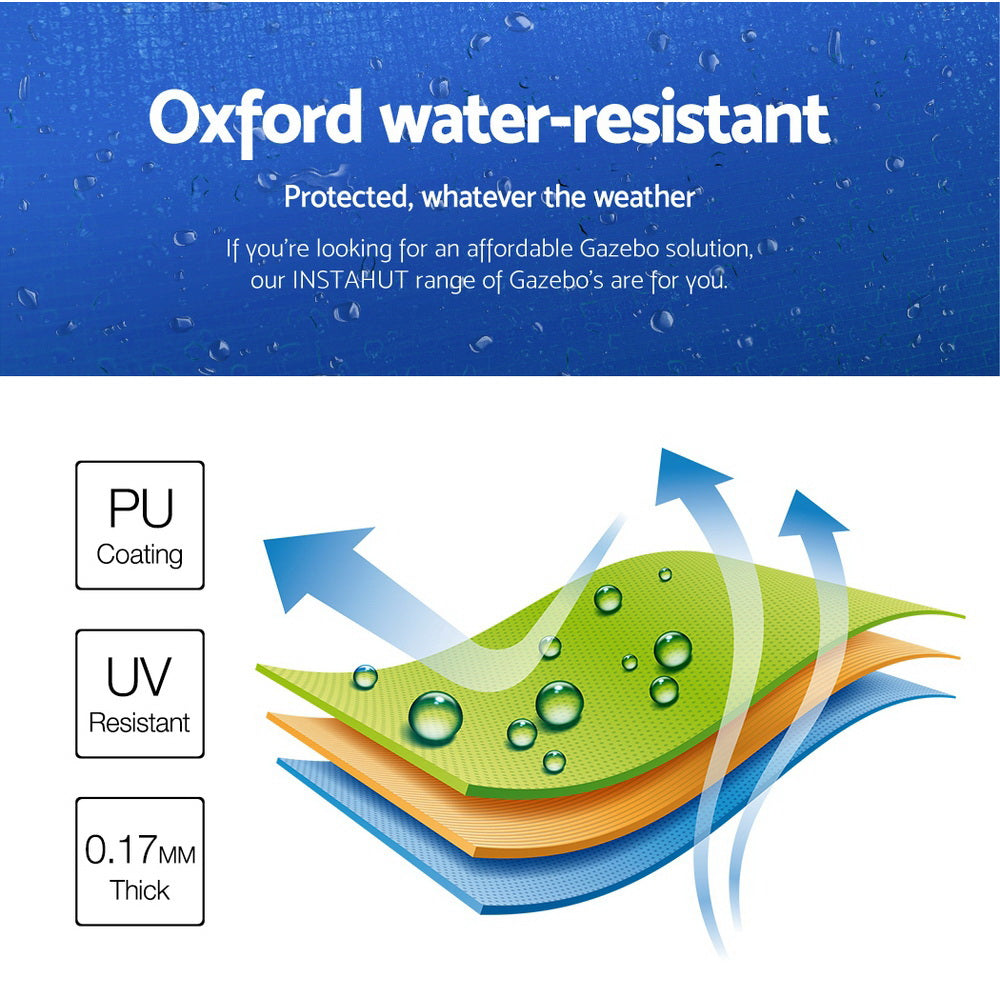 In your garden, at an outdoor BBQ or sports event, on your travelling vacation or on market days, our Pop-up Gazebo is your ideal solution for instant cover outdoors. With a wide roof coverage of 300cm by 600cm, the exceptional 6kg cover is made of durable PU coating Oxford fabric that’s both UV and water resistant. No more worries about being too hot or too wet, you can get your event going with total peace of mind from the elements. Giving you ample dry cover from rain and adequate protection from UV radiation.