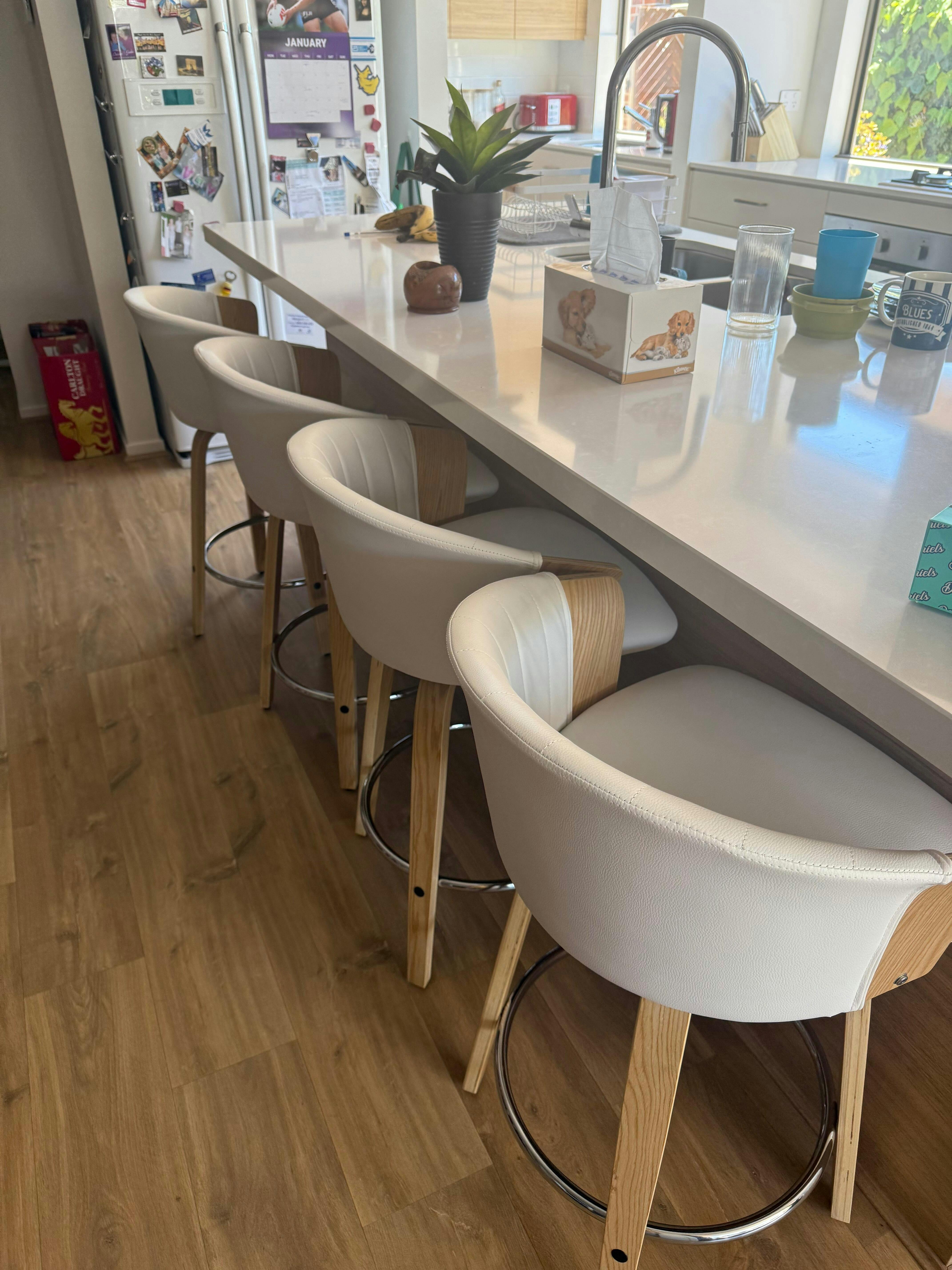Absolutely love them. One bar stool was damaged and Homecoze replaced it with no hassles. Very impressed with this company. Prompt delivery. Will definitely use them again.