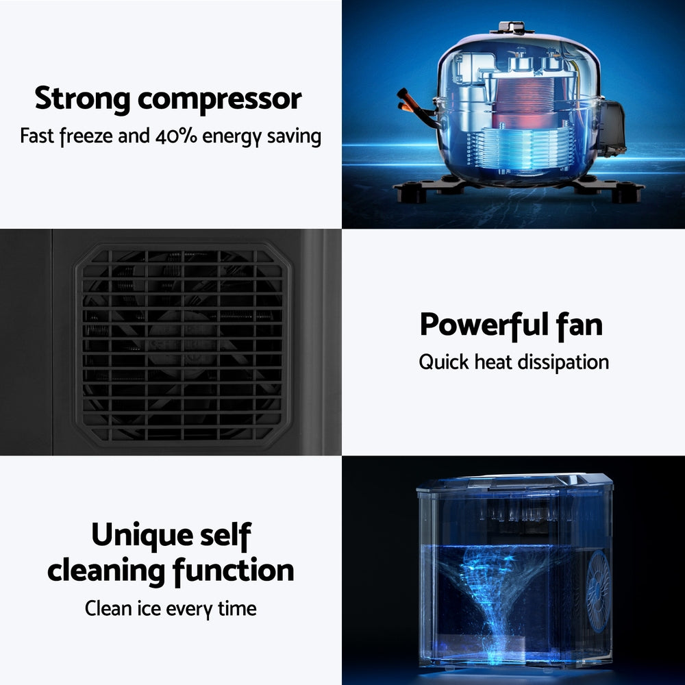 Built with smart sensors and efficient cooling technology, the unit features a water-shortage alarm, full-ice indicator, transparent viewing window and quiet operation. Its lightweight countertop design and built-in handle make it easy to transport, while the removable ice basket and scoop keep serving simple and mess-free.