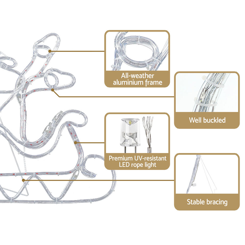 Bring festive joy to your home with the Santa's Sleigh and Reindeer Christmas Motif Light Set. Featuring vibrant multi-colour LEDs, this cheerful display adds a magical glow to your garden, balcony, or living space. Designed with a durable steel frame, it’s built to shine bright through the season, indoors or out.