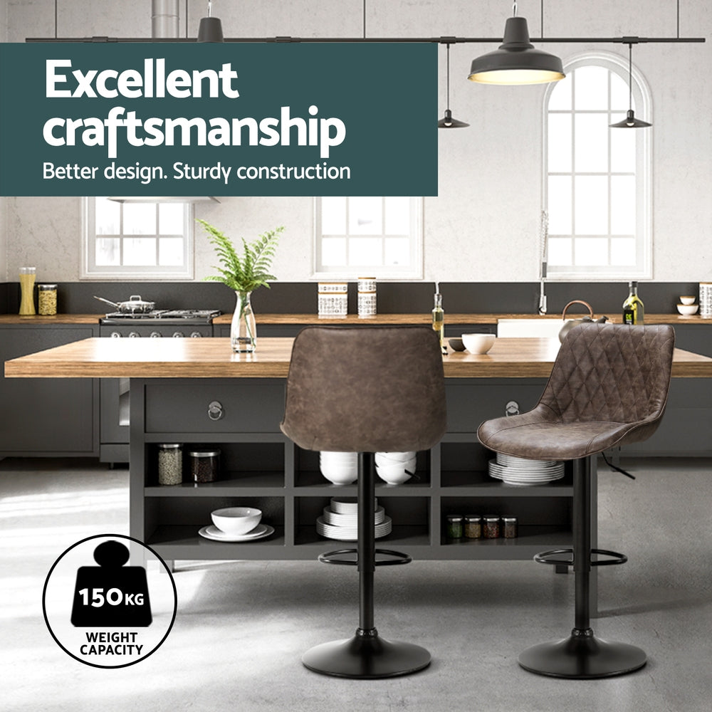 Introduce a timeless vintage charm to your space with the Gerald Bar Stools, blending classic design with modern functionality. Upholstered in premium vintage style PU leather, these stools offer a soft, padded seating experience with an elegant diamond-patterned backrest that exudes style and sophistication. Built with a sturdy powder-coated steel pedestal base and a semi-circular footrest, these stools provide excellent stability and support. Featuring a 360-degree swivel seat and adjustable height, they are perfect for any setting - from kitchens to bars - while floor protectors ensure scratch-free surfaces.