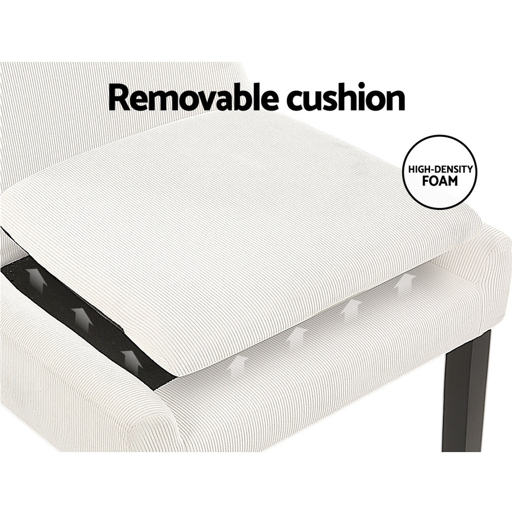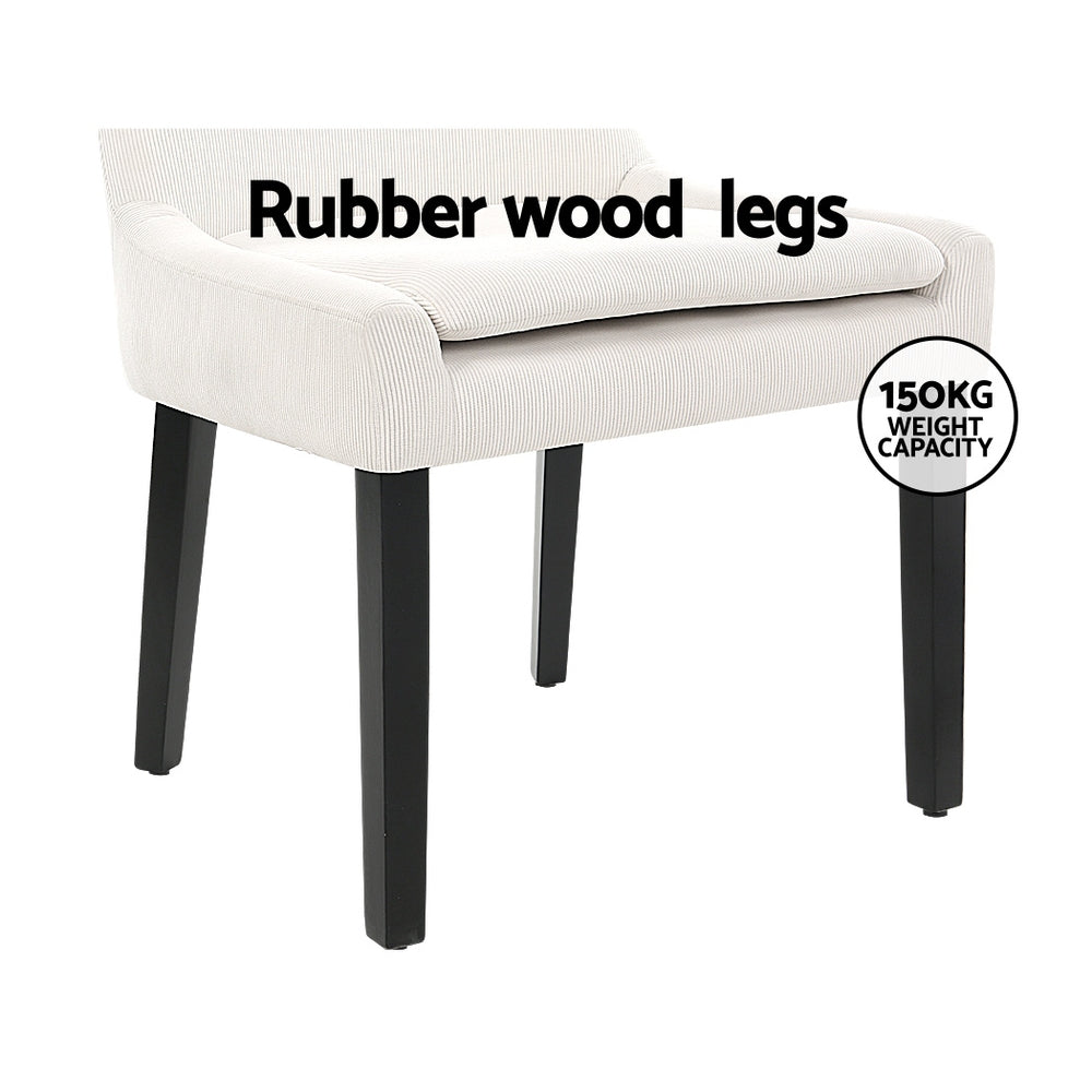Set of 2 Corduroy Upholstered Dining Chairs Low Back Kitchen Cafe Chair - Beige